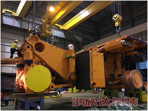 湘潭650噸礦山車出口澳洲,采用熱收縮防銹,發(fā)動機整體防護,其他出口熏蒸木箱打包裝箱,我司負責從包裝設計方案,現(xiàn)場打包及運輸一站式服務,省去客戶其他多環(huán)節(jié)的操作,省時省力高效率節(jié)成本。